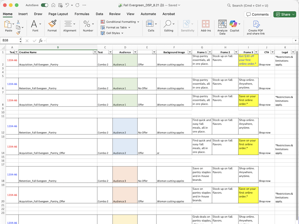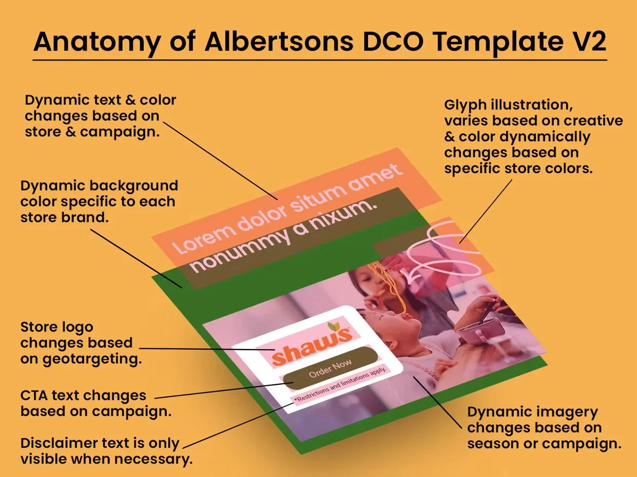 Our system hummed, creating templated design and copy to churn out massive amounts of DCO (dynamically optimized content) display and paid social creative.